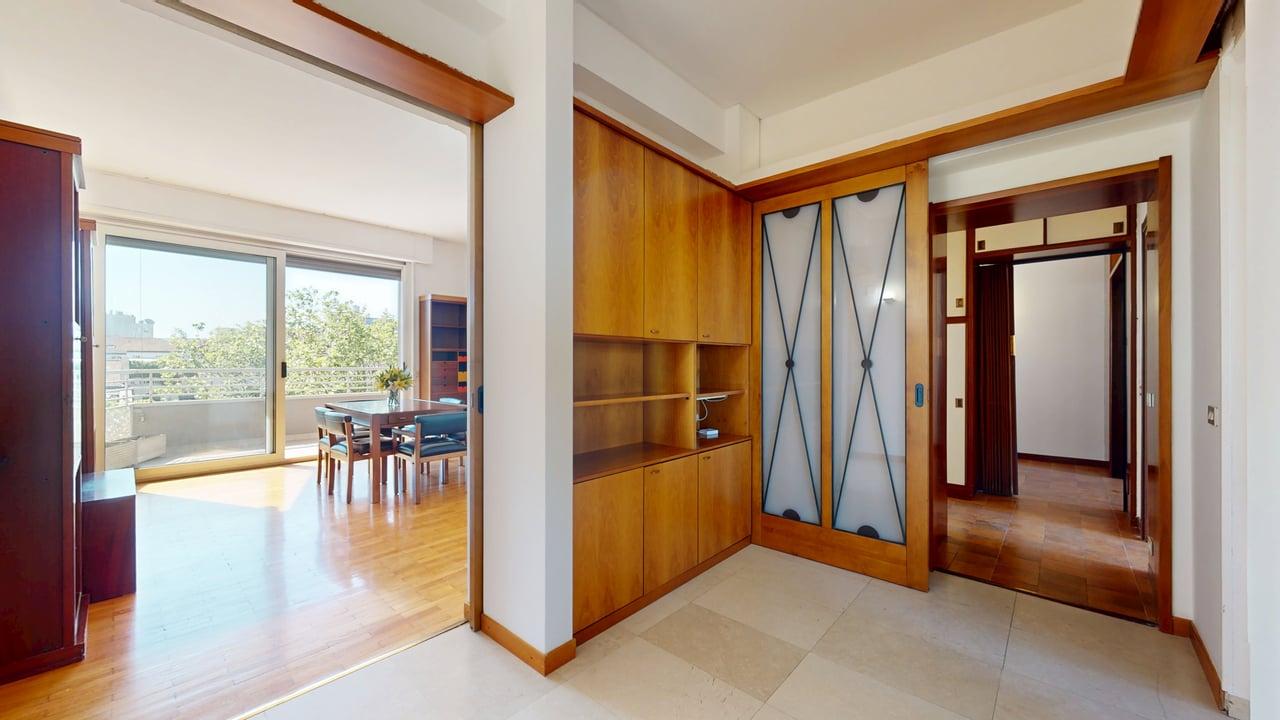 Posto al settimo piano, l’appartamento domina il viale con una vista aperta e una quiete assoluta, esaltata da soffitti alti 3 metri che conferiscono un respiro unico ad ogni ambiente.